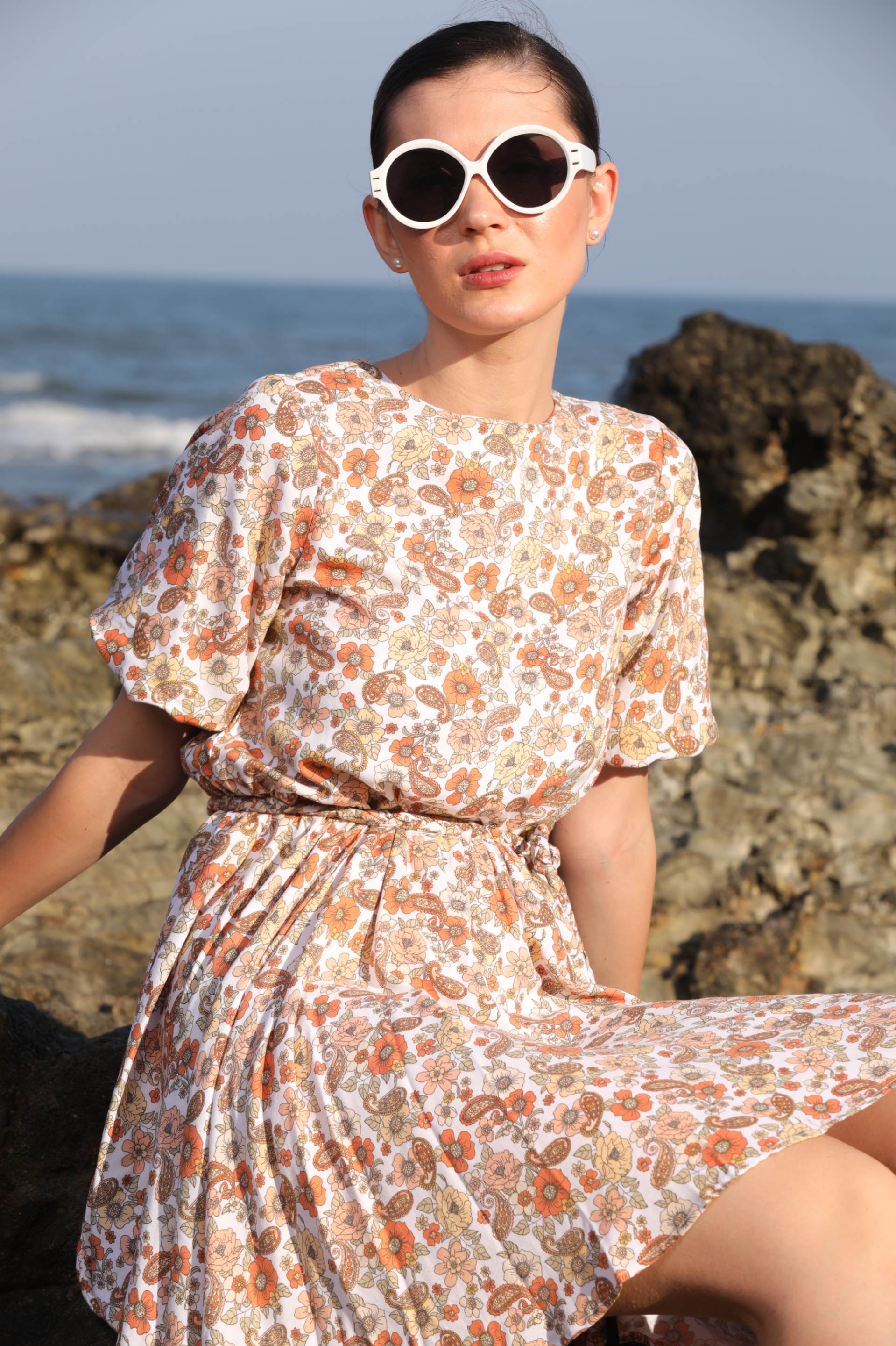 Discover ultimate comfort and style with our 100% Viscose Fabric Dress. Featuring a Round Collar and Elastic Sleeves for a playful touch. The Comfort Fit with a waist belt flatters your silhouette, while the Knee Length adds versatility. Enjoy the lightweight feel of viscose without lining. Perfect for embracing chic simplicity.