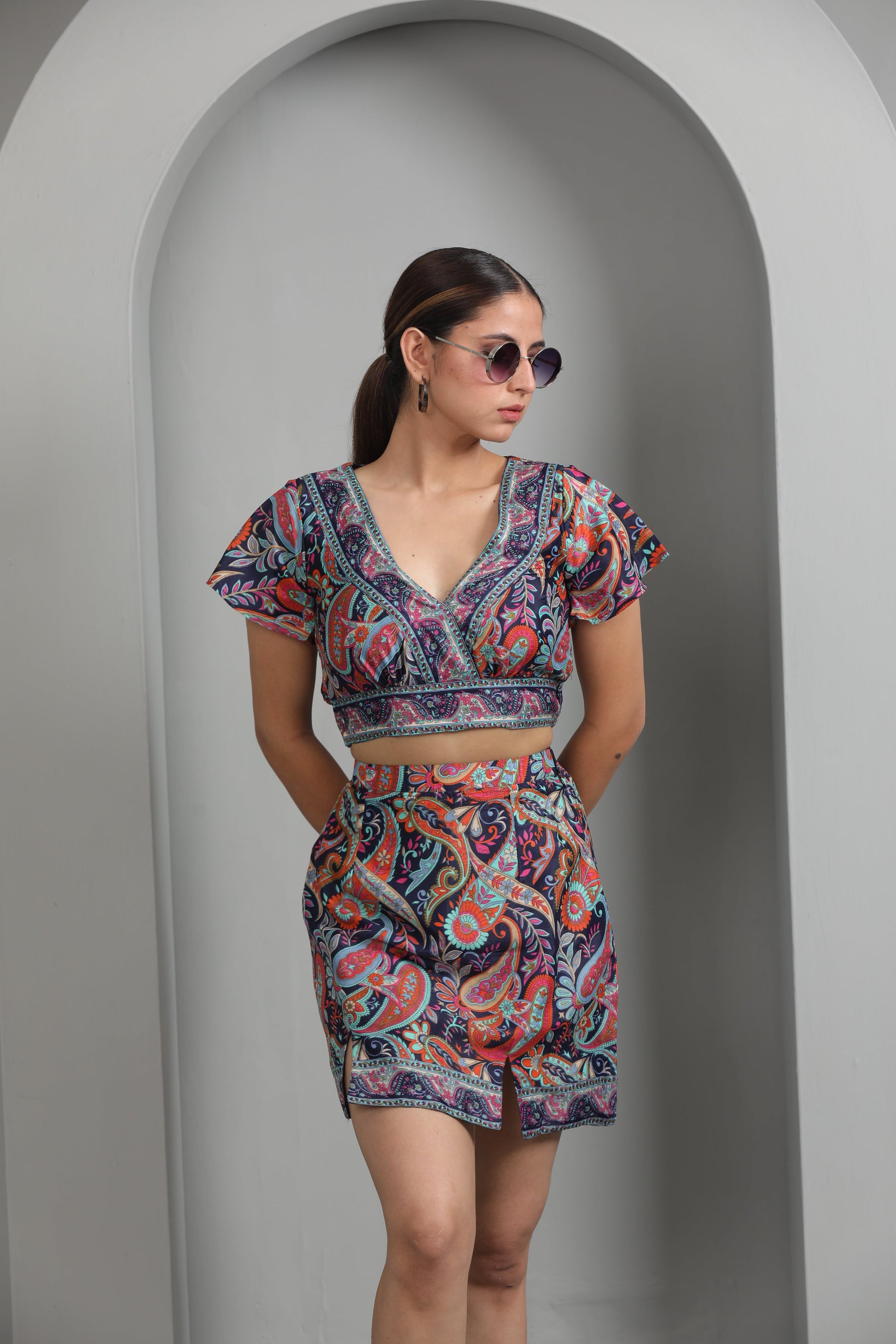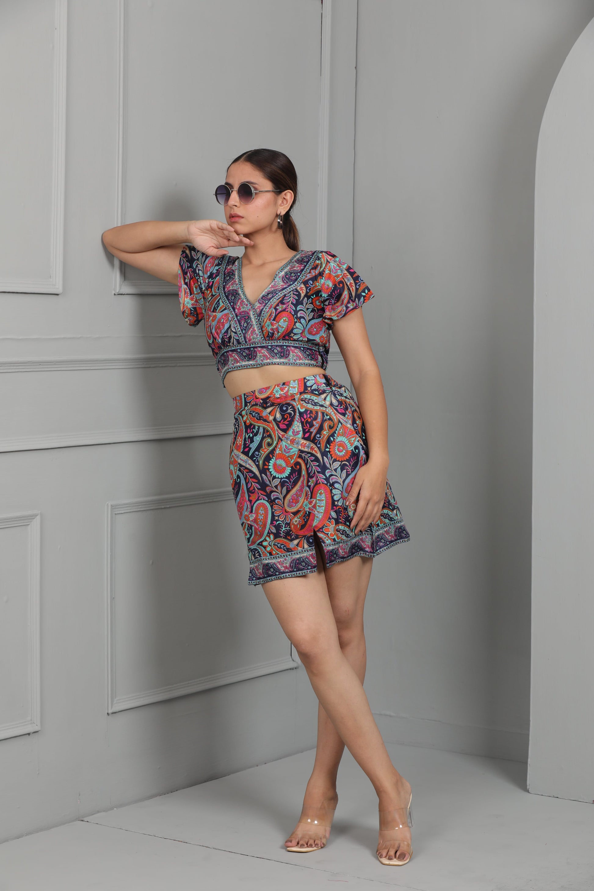PAISLEY PRINTED SKIRT TOP COORD SET