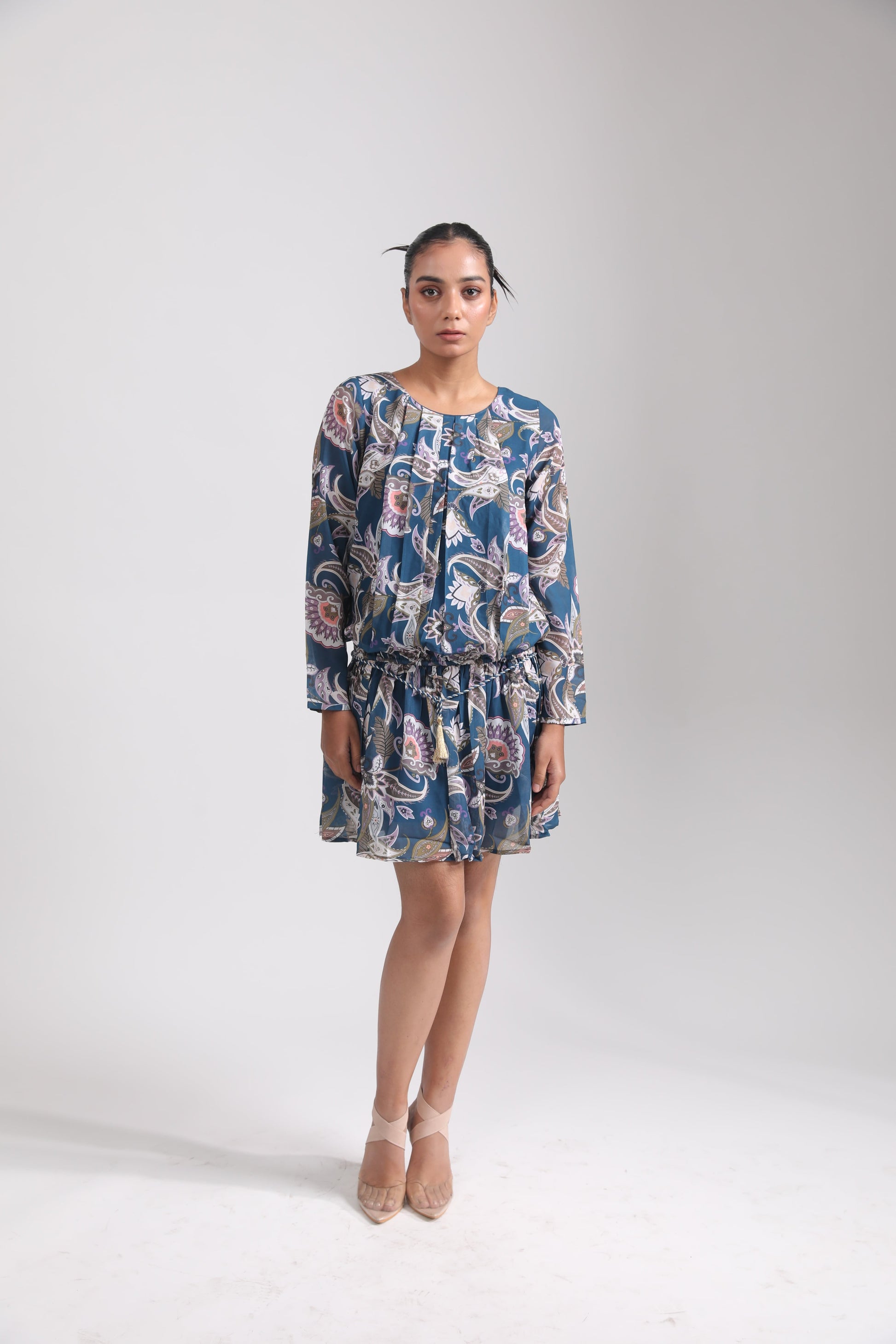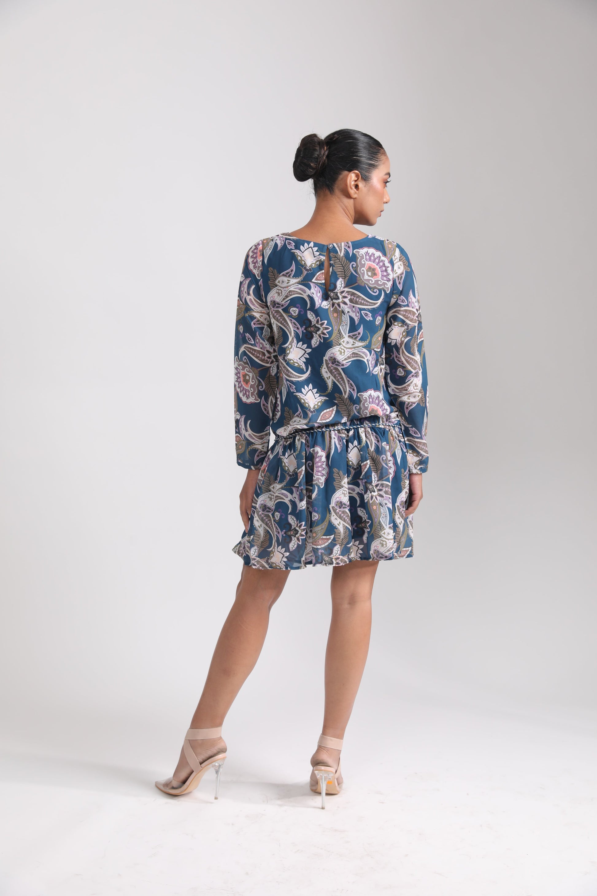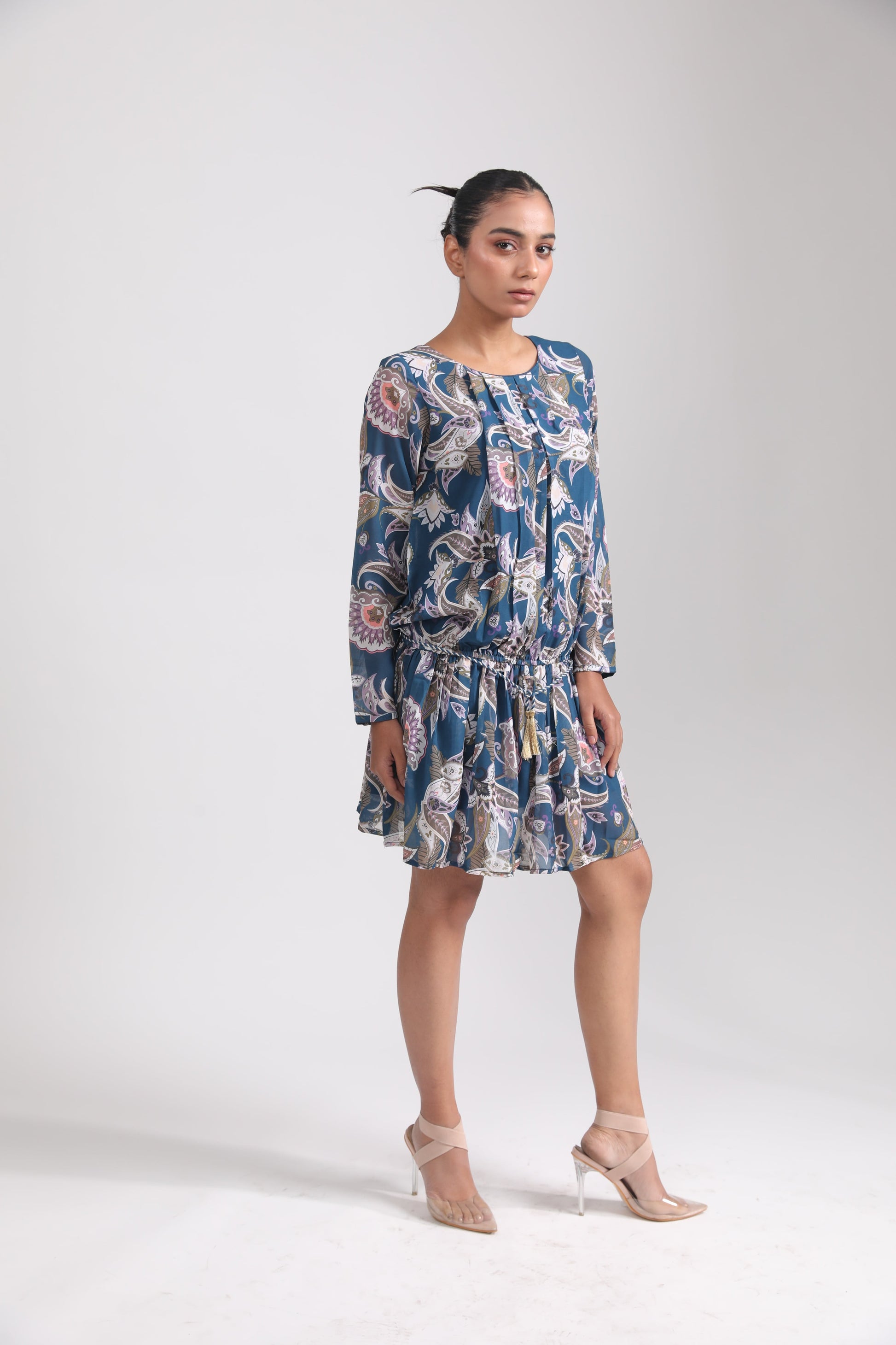 BLUE PAISLEY GEORGETTE DRESS
